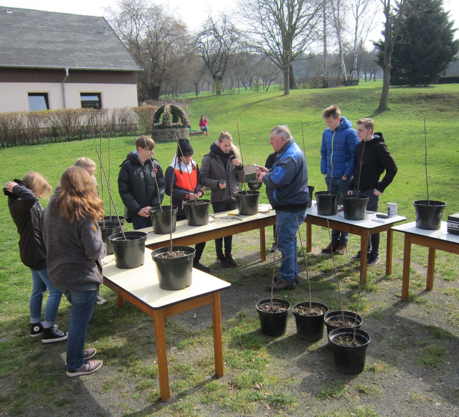 Ab 24. März veredelten Jugendliche, ab 10 Jahren, ihren eigenen Apfelbaum. Dies geschah unter Anleitung des erfahrenen Pomologen Horst Prager.